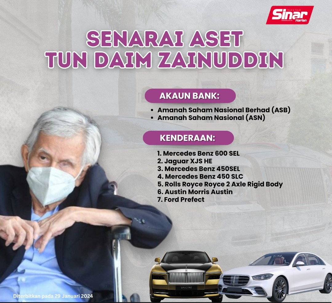 Is Daim appearing frail? Well, at 85 years old, he's an elderly man. It's likely he's fully aware of his age. However, don't let his physical appearance deceive you; his mind remains sharp, much like that of another elderly individual. So, don't be fooled by his arrival in a wheelchair and hunched posture; it's a strategy to project an elderly image and garner sympathy. No sympathy is warranted, considering that the list of his properties is just a fraction, with much of it already concealed. In stark contrast, a less fortunate woman received a five-year jail term for stealing a loaf of bread for her family.Daim has constructed a financial empire, possibly rivaling our GDP, yet it remains unlisted among Forbes' richest people globally. Why? Forbes doesn't recognize wealth acquired through illicit means. Truly, absolute power corrupts absolutely. - Kamsiah Haider